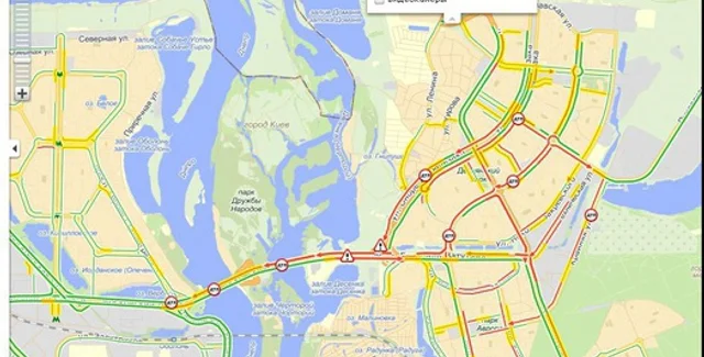 Ранее сообщалось о том, что на улицах Киева появились экраны с данными Яндекс.Пробок. Каждый из них показывает загруженность на ближайшем участке дороги и примыкающих улицах.