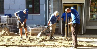 20-21 сентября 2012 года в городе Шостка коммунальные службы выдали спецодежду с рекламой Партии регионов рабочим, кладущим брусчатку на одной из центральных улиц Шостки, сообщают в пресс-службе организации CIS-EMO.