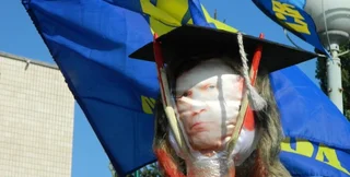 Стоит заметить, что активисты демонстративно подняли на пике макет головы Кивалова, а после занесли на кафедру ОИК и оставили там "на память".