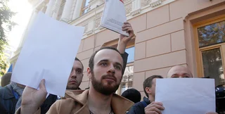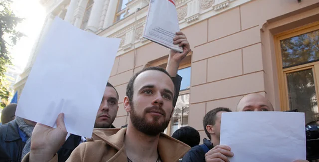 Несколько сотен представителей СМИ, правозащитников и медиа-экспертов пикетировали в Киеве здание, где проходил согласительный совет глав депутатских групп и фракций Верховной рады. Пикетчики держали в руках белые листы бумаги, желая наглядно продемонстрировать последствия принятого в середине сентября в первом чтении закона об уголовной ответственности за клевету. Собравшиеся поставили у входа в здание сплетенные для депутатов лапти и натянули колючую проволоку. Они выкрикивали лозунги: "Тюрьмы - бандитам, а не журналистам!" и "Украине - свободу слова!"