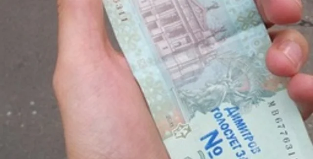 В Димитрове в Донецкой области появились купюры номиналом 20 гривен, на которых нанесена надпись Димитров голосует за №20