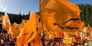 В Киеве под стенами Украинского дома проходит политический флешмоб партий Наша Украина, Конгресса украинских националистов и Украинской народной партии.