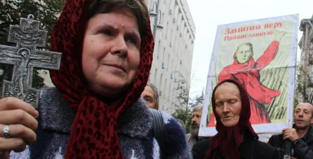 В частности, протестующие принесли с собой плакаты, иконы, кресты и другую религиозную символику. На протяжении акции участники читали молитвы с призывом к президенту отклонить законопроект № 10492 О едином государственном демографический реестр, сообщает Радио Свобода.