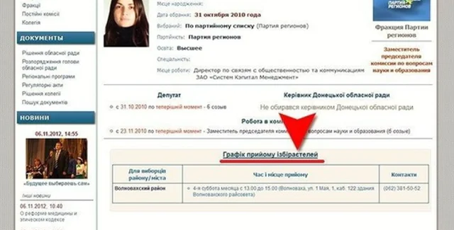 В частности, на странице одной из представительницы Партии регионов значится вместо "графика приема избирателей" комбинация "график приема ізбіраєтелей". Таким образом, официальный сайт ведомства пытался предоставить украинскую версию.
