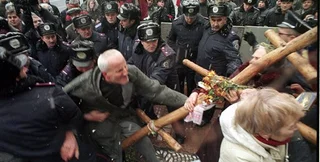 "При этом отдельные активисты пытались прорвать кордон милиции и выйти на проезжую часть ул.Крещатик с интенсивным автомобильным движением, чтобы пройти на другую сторону улицы. В результате этого инцидента возникла потасовка", - добавили в милиции, отметив, что после этого было осуществлено задержание 5-х участников акции.
