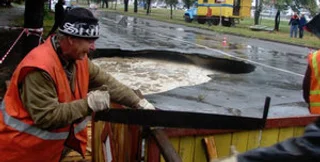 В Киеве на улице Борщаговская, 126 прорвало канализацию, в результате чего движение автотранспорта оказалось ограниченным, сообщает столичное управление ГАИ.