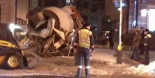 В Киеве на улице Богдана Хмельницкого автомобиль-бетономешалка провалился под асфальт.