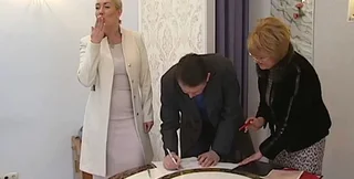 "Все заняло не больше двух минут и произошло в очень скромной обстановке. Как только заиграла романтическая музыка, Мельниченко и Розинскую пригласили к росписи", - сообщает ТСН.