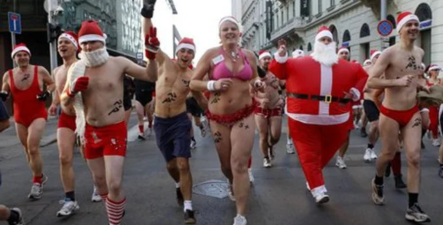 купальные костюмы бежали по улицам поздравляя грожан с наступающими праздниками. Как сообщается, ежегодное благотворительное мероприятие Большой забег Санта Клаусов