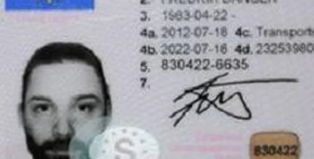 Шведский художник Фредерик Сакер нарисовал свой автопортрет на водительском удостоверении.