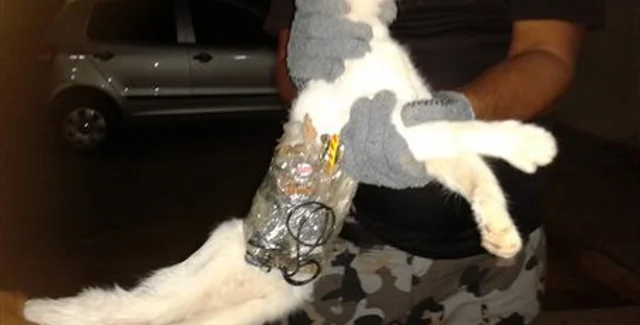 На территории тюрьмы в городе Арапирака в бразильском штате Алагоас накануне Нового года был задержан кот, на котором были найдены вещи, предназначавшиеся для заключенных.