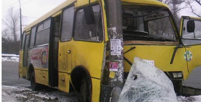 В среду, 23 января в Киеве на Подольском спуске маршрутка врезалась в столб, пострадал водитель.
