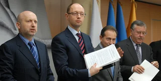 "Три оппозиционные фракции собрались, чтобы выразить свою политическую позицию относительно того, что происходит в Украине. Начиная от политических преследований Юлии Тимошенко и Юрия Луценко и других депутатов, которые указаны в проекте нашего заявления, а также относительно определения дальнейших действий оппозиции на следующей сессии парламента", - отметил Яценюк.