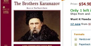 На данный момент, заказать британскую аудиокнигу можно в интернет-магазине Amazon за $44,56. Роман Достоевского озвучил известный английский актер Том Пиготт-Смит, которого знают по фильмам Александр, V значит Вендетта и Алиса в Стране Чудес.
