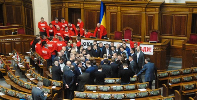Депутаты от оппозиционных фракций собираются в Верховной Раде после появления слухов о возможном силовом разблокировании трибуны и президиума.