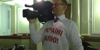 После брифинга Яценюк взял у своей пресс-службы видеокамеру и ушел снимать в сессионный зал.