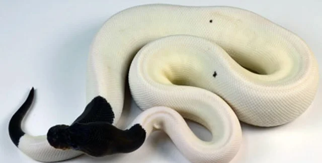 Самку питона с черной головой и белым туловищем оценена ее хозяином в 16 тысяч долларов.