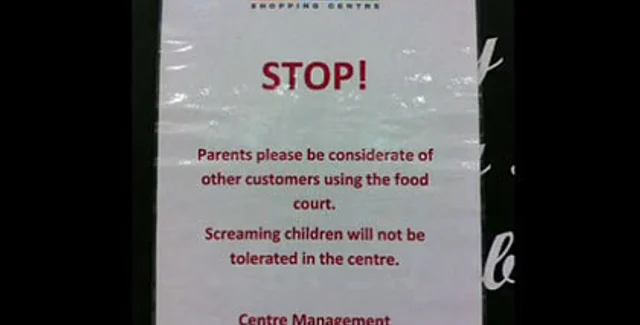 Теперь рядом с игровой зоной размещено объявление, в котором родителей просят внимательно следить за детьми, а также предупреждают, что администрация не намерена мириться с кричащим ребенком.