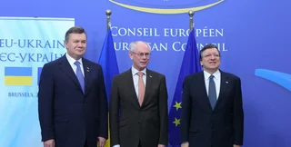Закрытая встреча президента Украины Виктора Януковича с президентами Совета ЕС и Еврокомисии Херманом Ван Ромпеем и Жозе Мануэлем Баррозу длится намного дольше, чем предусмотрено регламентом. СМИ отмечают прохладное отношение европейских лидеров к украинскому президенту