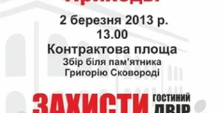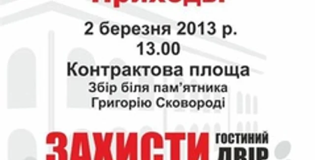 В субботу, 2 марта, в Киеве на Контрактовой площади пройдет митинг-концерт в защиту Гостиного двора.