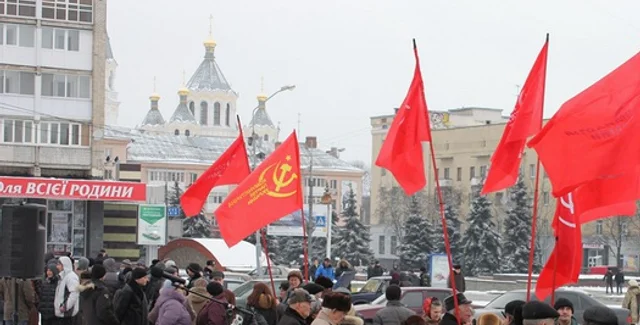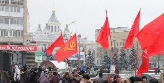Как сообщается, в областном центре в воскресенье состоялись два идеологически противоположных массовых мероприятия - митинг сторонников КПУ на Соборном Майдане возле памятника Ленину по главным улицам Житомира.