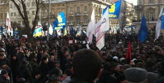 "Вставай, Украина!" - Это не просто политическая акция: Это речь о человеческом достоинстве, о достоинстве тех тысяч украинцев, которые сейчас пришли на этот митинг. Они не хотят так жить, и они имеют право на изменения. Поэтому это путь к переменам",- сказал он журналистам.