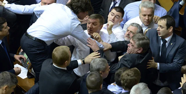 Как сообщалось, сегодня в Раде подрались свободовцы и регионалы. Свобода требовала от Ефремова выступать на русском языке. В свою очередь в ПР назвали лидера свободовцев Олега Тягнибока "фашистом".