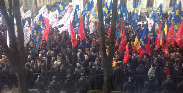 Представители оппозиции колонной прибыли под здание парламента около 10 часов. Во главе колонны шли народные депутаты. Всего в митинге под зданием Рады по предварительным оценкам участвует около 10 тыс человек.