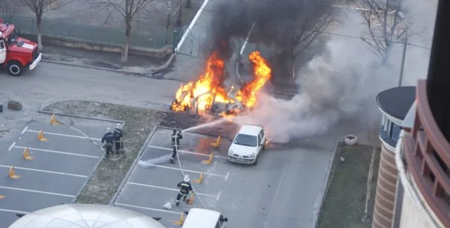 "Стала свидетелем пожара. На всю улицу послышался взрыв, подошли к окну и увидели горящую машину. Через 3-4 минуты уже приехали пожарные (которые немного задержались так как объезжали все не правильно припаркованные машины) и скорая, еще минут через 10 подъехала милиция. Стоящую рядом машину успели спасти", - сказано в сообщении пользователя Dana Umanskaya.