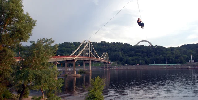 В Киеве с 1 мая начнет вновь работать канатная дорога через Днепр, которая позволит перелететь через реку за 60 секунд, а протяженность аттракциона составит 600 метров.