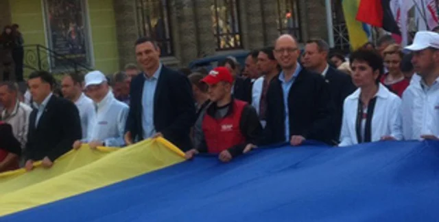 В Чернигове 26 апреля начался митинг оппозиции Вставай, Украина, во главе колонны которого идут Олег Тягнибок, Арсений Яценюк и Виталий Кличко, сообщает Батьківщина.