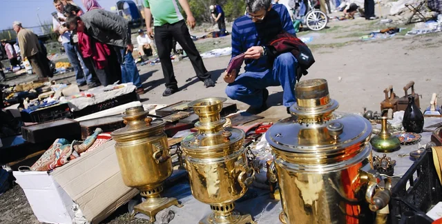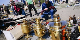Чучело совы, фотоаппарат Leica, балалайка, противогаз, пуговицы, гайки, листы титана — сложно назвать предмет, который нельзя найти на киев­ском блошином рынке. Каждые выходные пространство между станциями "Зенит" и "Киев-Петровка" напоминает пестрое лоскутное одеяло. Сотни людей выставляют свое добро на лотках, покрывалах и просто на земле. Пару лет назад "блошка" переместилась сюда с Птичьего рынка на Куреневке. От новой локации, которую в народе называют "Полем чудес", торговцы не в восторге. Они жалуются, что сюда почти не заходят иностранцы, а именно они были самыми благодарными покупателями старья.