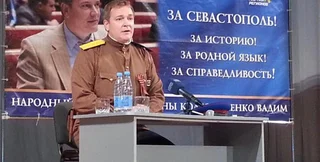 Народный депутат Вадим Колесниченко в Севастополе пришел на встречу с журналистами в форме офицера Красной Армии, передает издание Новости Севастополя.