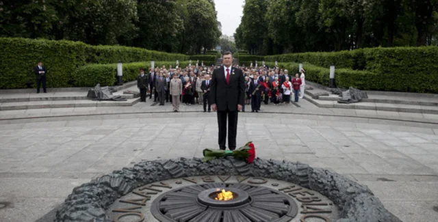 "Сегодня мы чтим тех, кто, жертвуя собой, спасли нашу землю от фашистского порабощения, подарили нам мир и свободу. В своих сердцах мы всегда будем нести светлую память о миллионах погибших наших соотечественников", - цитирует Януковича официальный сайт Президента.