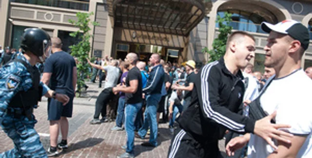 - Мы тут сейчас не от клуба, нам сказали, что сегодня будет работа, поэтому мы пришли, - сказал один из них. После того как на площадь прибыли дополнительные силы Беркута, молодые люди скрылись в парке за Михайловским собором. Милиционеры, хотя и вошли в парк, не предприняли никаких попыток их задержать.