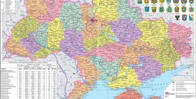 В более конкретном измерении речь идет о таком территориальном разделе государства: Автономная Республика Крым; Донецкий регион (Донецкая, Луганская области); Карпатский регион (Львовская, Ивано-Франковская, Черновицкая, Закарпатская области); Киевский регион (Киевская, Кировоградская, Черкасская, Черниговская области); Подольский регион (Винницкая, Хмельницкая, Тернопольская области); Полесский регион (Волынская, Ривненская, Житомирская области); Приднепровский регион (Днепропетровская, Запорожская области); Причерноморский регион (Одесская, Херсонская, Николаевская области); Слобожанский регион (Харьковская, Сумская, Полтавская области).