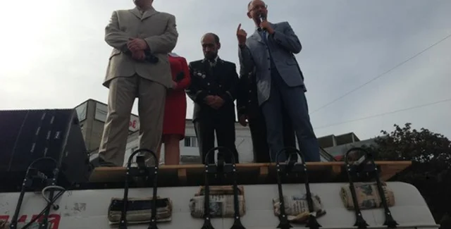 Около 16.40 секретарь Донецкого городского совета, член Партии регионов Сергей Богачев пытался пройти к сцене митинга, чтобы выступить перед собравшимися, однако, активисты оппозиционных партий не пропустили его и вступили с ним в словесную перепалку.