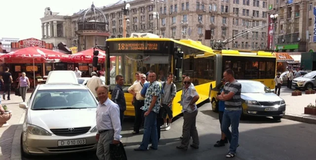 Из-за неправильной парковки автомобилей с дипломатическими номерами посольства Армении в Украине образовалась пробка из троллейбусов на Майдане Незалежности.