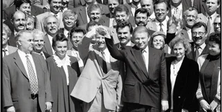Компартию снова разрешают в 1993 году. Областные и низшие советы стремительно "краснеют". Президент Кравчук вводит институт представителей президента в областях и районах, но их взаимоотношения с местными советами не урегулированы никаким законом. В этой ситуации самой организованной политической силой постепенно становятся "красные директора" — руководители промышленных гигантов, особенно влиятельные на востоке страны. Выразителем их интересов считается гендиректор днепропетровского ракетостроительного завода "Южмаш" Леонид Кучма, который в 1992–1993 годах работает премьер-министром.