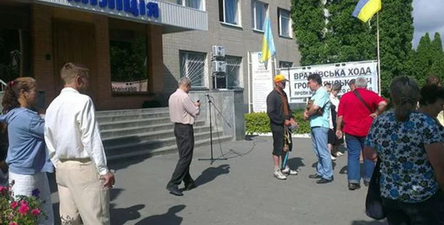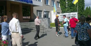 Как сообщалось ранее, в РОВД Фастова, где сегодня проходил митинг в поддержку жителей Врадиевки, прибыл начальник штаба областного главка милиции Алексей Лисниченко.