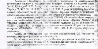 В то же время в распоряжении Главкома появилось письмо, в котором сотрудники СБУ сообщили руководству министерства о том, что так и не получили доступа к фонду заповедника. В письме замначальника одного из управлений Владимир Ляпкин попросил замминистра культуры Александру Губину "ускорить доступ к экспонатам".