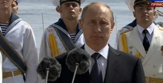 Выступая на торжественном мероприятии по случаю совместного празднования Дня ВМФ России и Дня флота Украины президент России Владимир Путин заявил, что совместный военный парад знаменует крепость содружества двух флотов.