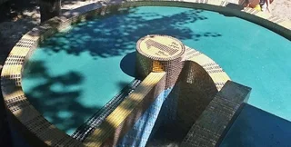 Скульптура сделана из стеклопластика и камня, украшена мозаикой. В каждой чаше вместо одного кусочка мозаики - по металлической гривне.