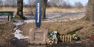 Именно на этом месте, в апреле 1979 погиб Леонид Быков. Актер возвращался с дачи домой в Киев, обгонял трактор и на встречной полосе столкнулся с грузовиком.