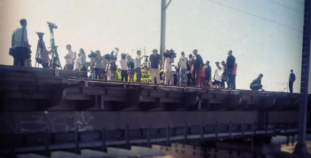 Журналист Андрей Баштовый заявил, что рабочие "перекрыли движение, поскольку им не заплатили". В частности, около 10 строителей стоят на рельсах с плакатами Работа – зарплата = рабство, скандируя Рабочие не рабы!