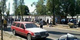 Призывы повалить забор звучат от молодых людей (около 20), которые с целью остаться неузнаваемыми надели на лица медицинские маски. Несколько наиболее активных уже предприняли попытку закрепить на вбитый в забор крюк веревку, чтобы опрокинуть его.