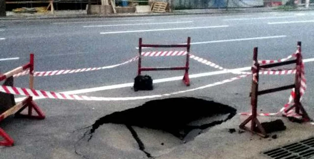 "Чаще провалы асфальтобетонного покрытия на дорогах столицы вызванные прорывами водонесущих инженерных сетей, прежде всего тех, которые находятся под давлением. Прорывы происходят прежде всего на аварийных сетях: тех, которые эксплуатируются длительный период времени и тех, которые находятся в зонах грунтовых вод и подвергаются коррозии", - прокомментировал Береговой.
