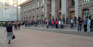 Возле здания Киевского городского совета с ночи дежурили активисты, которые сегодня, 19 августа, намерены блокировать заседание совета, которое они считают незаконным.