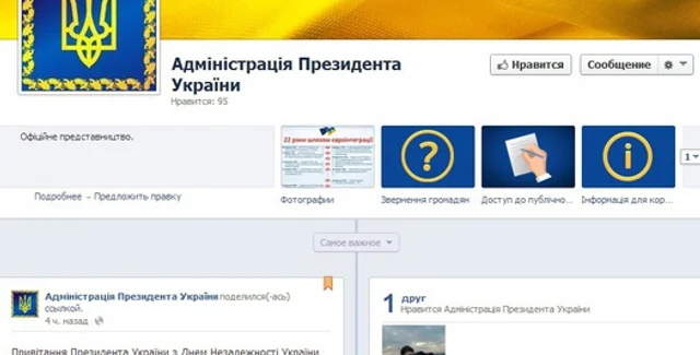 Сегодня, 24 августа, Администрация Президента Виктора Януковича открыла свою официальную страницу в социальной сети Facebook.