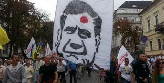 Напомним, что вчера, 24 августа, в Киеве во время праздничного парада в честь Дня Независимости, группа людей развернула плакат с изображением Януковича с красной точкой на лбу. Как сообщалось, в толпе началась потасовка, неизвестные вырвали плакат из рук и убежали.